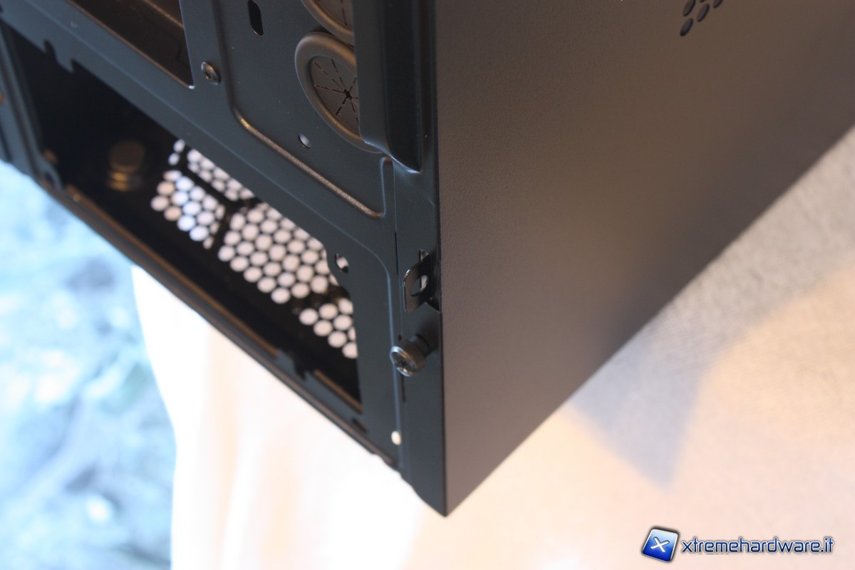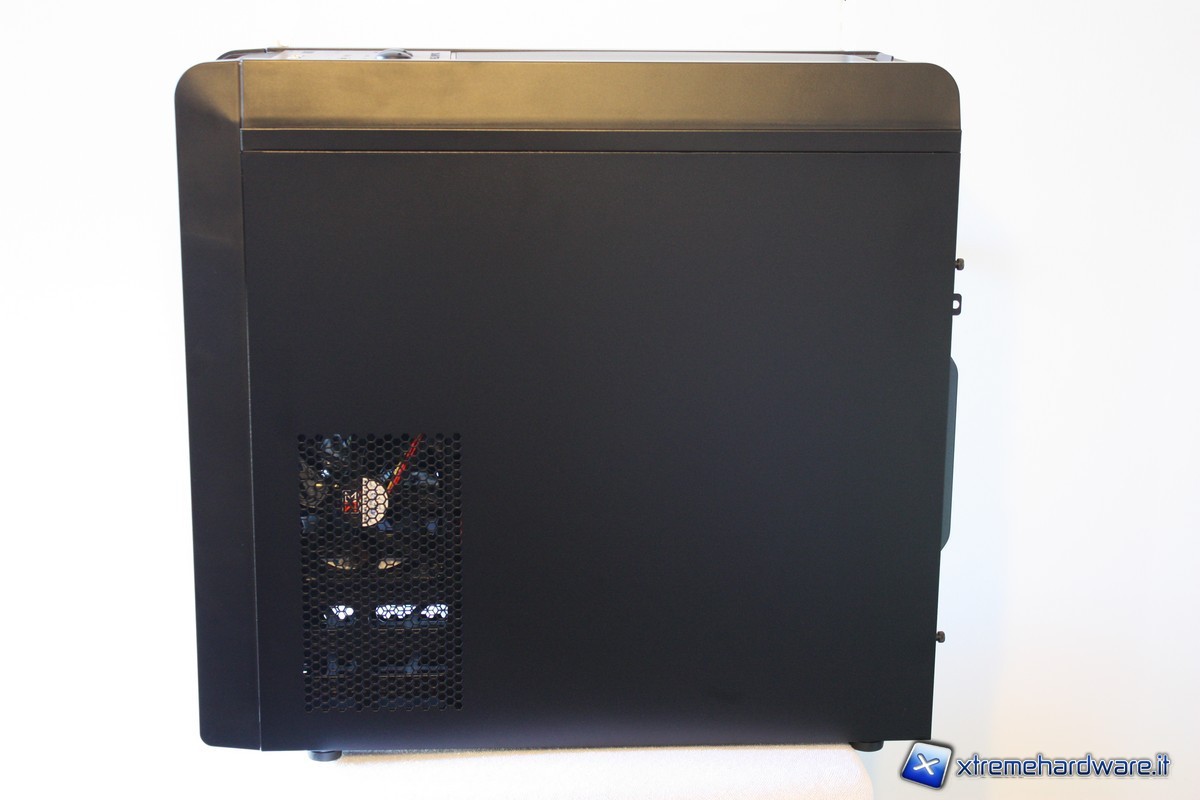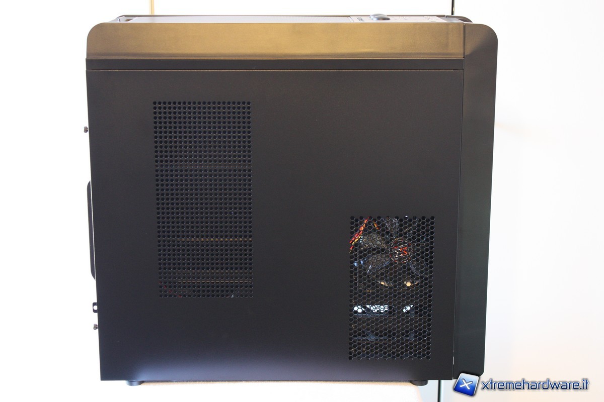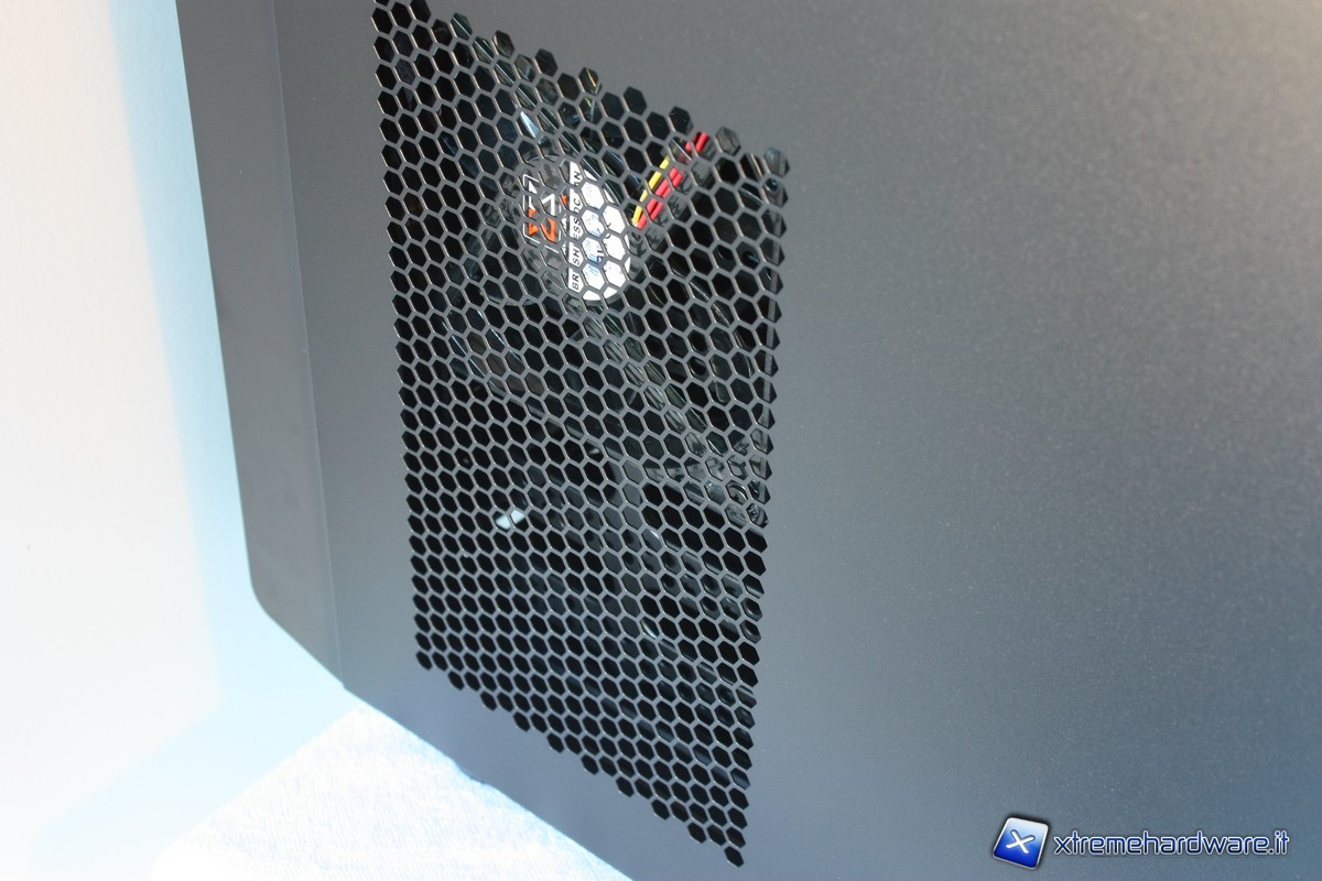 Il pannello laterale sinistro presenta due grandi griglie, una in corrispondenza della scheda madre, precisamente nella zona del dissipatore della cpu e l’altra nella sezione degli hard disk.