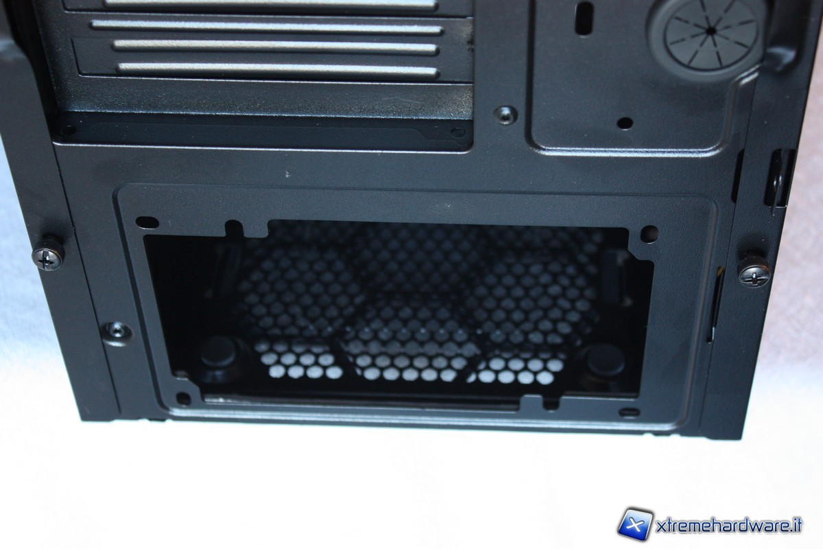 L’alimentatore sarà posizionato in basso, con la possibilità di rivolgere la ventola verso l’esterno del case, per pescare aria fresca e per non rovinare i flussi d’aria interni del cabinet.
